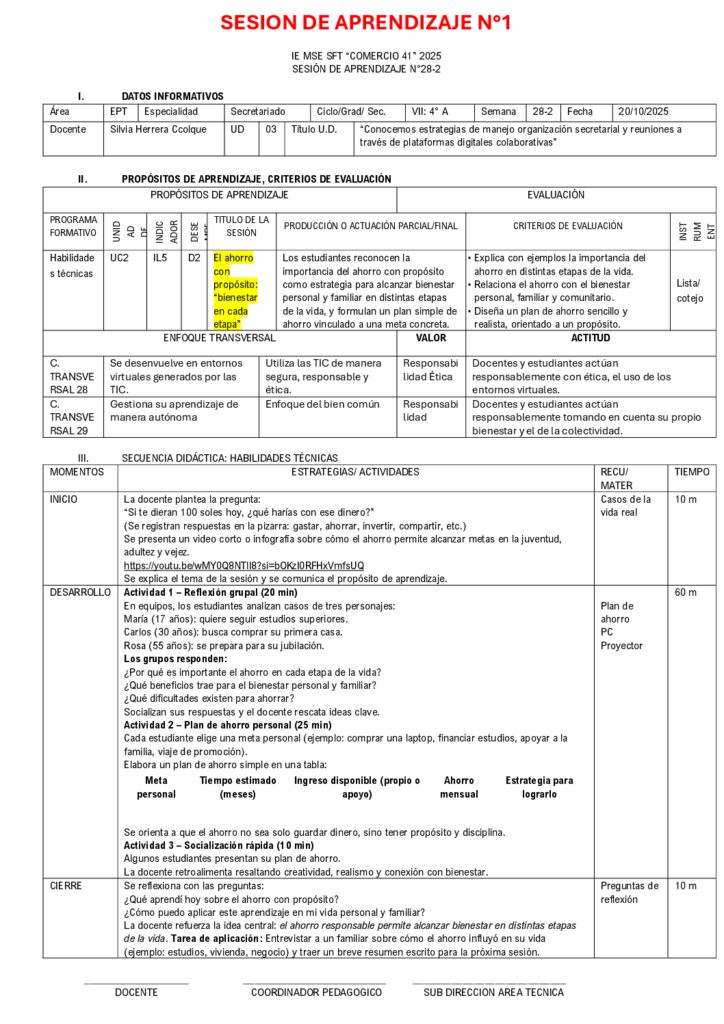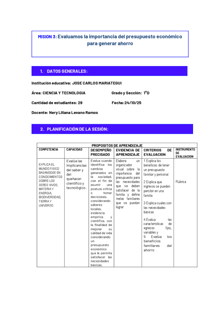La sesión contribuye a la alfabetización financiera en estudiantes de 1ro de secundaria, haciendo una reflexión sobre los problemas que surgen cuando no hay un…